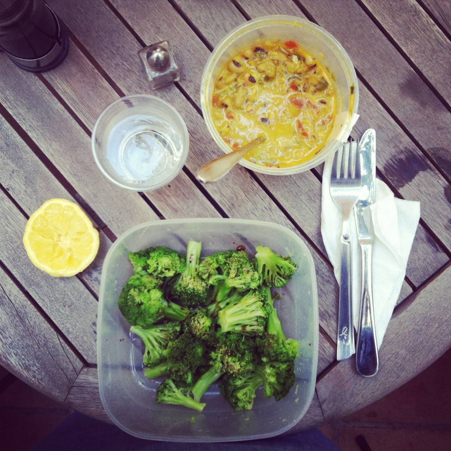 Για μια στιγμή μου ήρθε ν’ ανοίξω το ψυγείο και να τα φάω όλα. Αλλά συγκρατήθηκα. Έπλυνα το μπρόκολο, το έβρασα, το ίδιο και το αυγό, έβαλα και λίγο προσούτο για να επιβραβεύσω την αυτοσυγκράτησή μου κι έκατσα κι έφαγα σαν άνθρωπος.