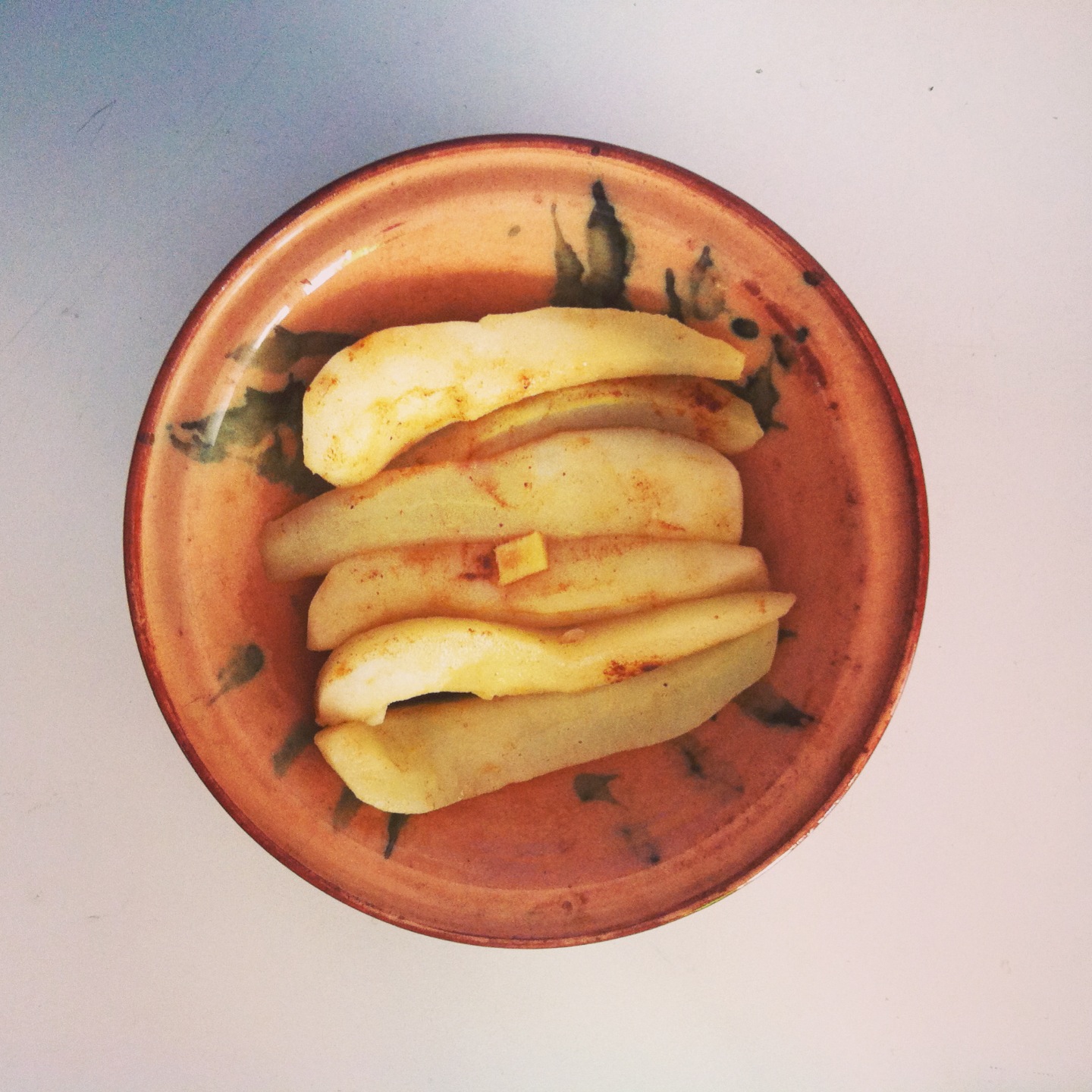 Σήμερα τα κατάφερα μια χαρά με τη μαγειρική, τα ξινόμηλα νοστίμισαν με το σωστό μαγείρεμα και την προσθήκη μούρων και σιροπιού σφενδάμου. Θα μου πείτε, αυτό δεν παχαίνει; Ναι, έχει θερμίδες, αλλά είναι φυσικό γλυκαντικό.